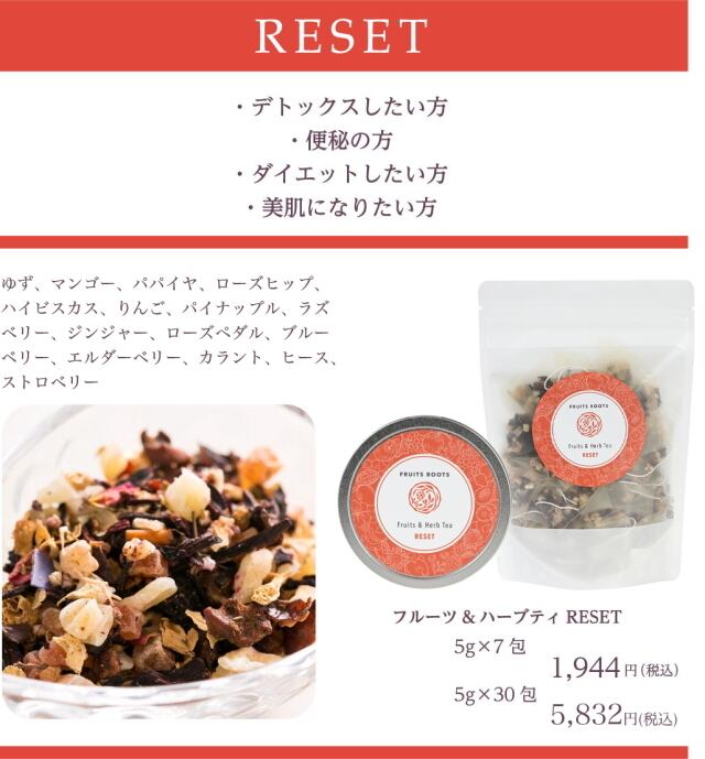 フルーツ&ハーブティ リセット(RESET)7包 -Inner Care Line- fruits roots “フルーツルーツ” [国産オーガニックフルーツ]