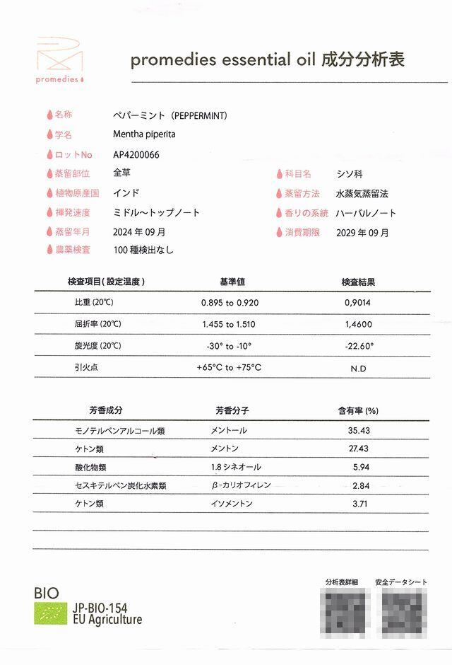 ペパーミント (Mentha piperita) 10ml インド産 アロマテラピー エッセンシャルオイル 精油 promedies プロメディーズ